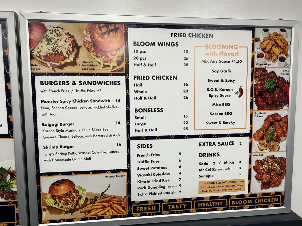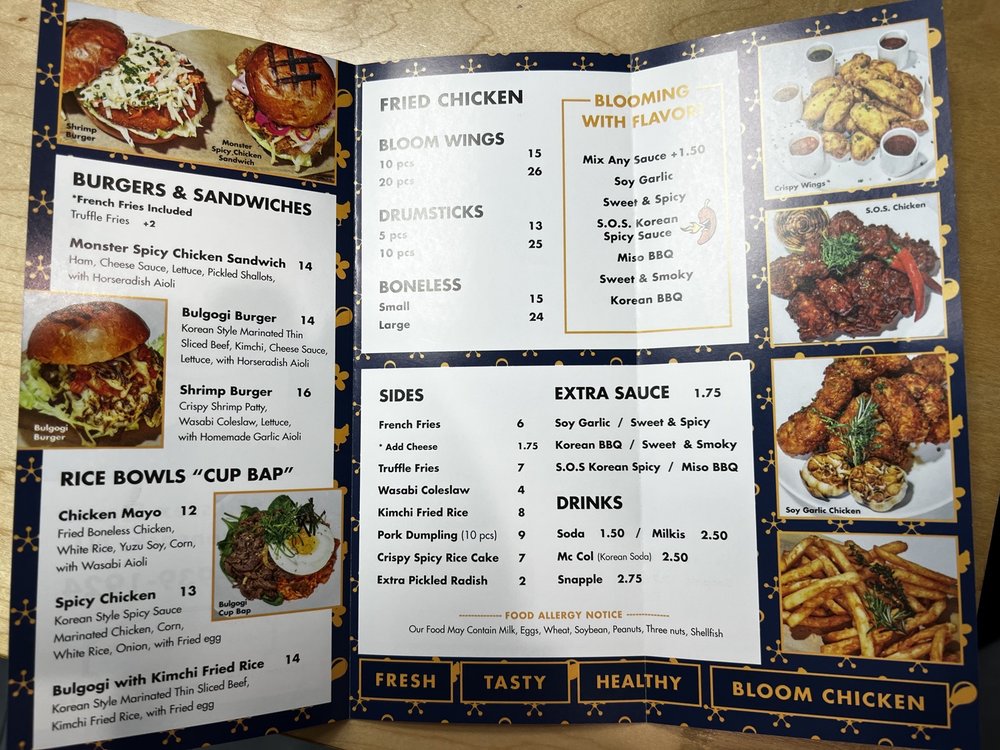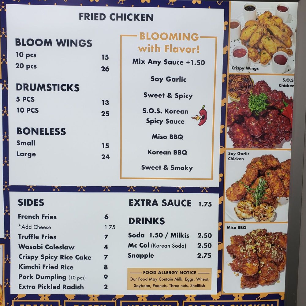 “ As a lover of Korean fried chicken, any time I drive by a kfc place that I've never tried before, I add it to my to-do list. I finally had the chance to try Bloom Chicken and I can confidently say that I'll be visiting this place on a fairly regular basis. I got a large boneless chicken box, which comes with five varieties of boneless chicken, plus fries. It was plenty of food for four people, and the chicken was excellent. It was juicy, flavorful, and tender. I also tried the kale salad, which was good but not a must-get. ”